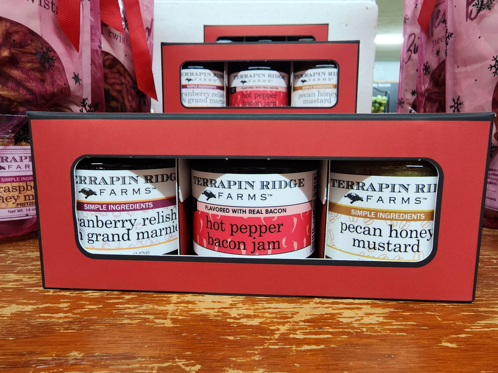 Gift Jar Set - Cranberry Relish with Grand Marnier/Hot Pepper Bacon Jam/Pecan Honey Mustard